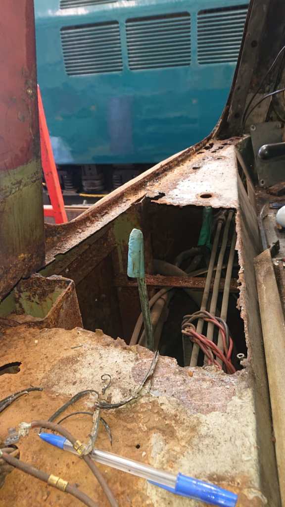 33108 Dismantling A few pictures from the last few working parties. 33108 is now in the Kidderminster Diesel Depot with the cab being dismantled to allow the welder to start work. You’ll see the usual expected levels of BRCW rust & corrosion! Share this: Click to share on X (Opens in new window) X Click to share on Facebook (Opens in new window) Facebook Like Loading... Related