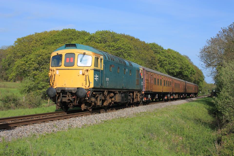 Built: BRC&W Works, Smethwick. Introduced to Traffic: 29th October 1960 BRC&W Works Number: DEL 120. TOPS Renumbering: 23rd March 1974. Depot Allocations: HG: 29/10/60. EH: 12/64. Withdrawn: 24/06/91. Modifications/Restrictions - Push-Pull Equipped at ZG: 03/11/67 (The last converted standard 33/1). Liveries: BR Green BR Blue BR Blue (P) Livery Notes: White Cat applied: 07/85. Sectors: 11/05/87 - Parcels 28/05/87 – RXXX. 18/01/88 – RXXA. 05/11/88 – RXLC. 03/12/88 – DWCQ 22/01/89 – DMEA. 19/02/89 – DCSA. 13/05/90 – DCWA. 17/03/91 - DXXD Works Attention: Intermediate Overhaul at ZG: 15/03/84. Main Generator Change at ZG: 07/85. Power Unit Change (ex 33054) at ZG: 03/86. Main Generator Change at ZG: 01/88. Final BR Passenger Working: 07/12/90: 1C40 13.35 Paddington-Penzance, from Castle Cary-Exeter St Davids following failure of a Class 47. Withdrawn from Service: Out of Service at 13.00 at EH on 17/03/91. Condemned at 09.00 at EH on 24/06/91. Switched off with no defects. Disposal: The locomotive was stored at Eastleigh Depot donating turbocharger to 33048 at Stewarts Lane. It was then towed into Eastleigh Yard on 10th February 1992 and to the top of East Yard in March 1992. The locomotive was put out to tender in March 1992 and sold for preservation to the Class 33/1 Preservation Group. Initial restoration and cosmetic painting took place in Eastleigh Yard including the application of D6528 numbers on the bodysides in January 1993. The locomotive was towed to St Leonards by 33012 on 19th February 1993 on 5Z33 09.45 Eastleigh-St Leonards, following a successful ultrasonic axle test at Eastleigh Depot. Restoration commenced at St Leonards but in July 2001, the locomotive donated its power unit to 33108. The locomotive then moved from St Leonards by road on 30th January 2002, arriving at its new home at Barrow Hill on 31st January 2002. Repainted in BR Blue in September 2003. The power unit was started for the first time in preservation on 15th November 2003. It then moved under own power for the first time in preservation on 27th June 2004 operating a successful test run at Barrow Hill to Springwell sidings. The Locomotive was moved by road on the 5th June 2008 to Allelys yard, and then on to the Swanage Railway, arriving on the 9th June 2008. Its first passenger working was the 18.10 Swanage-Norden on the 13th June 2008.